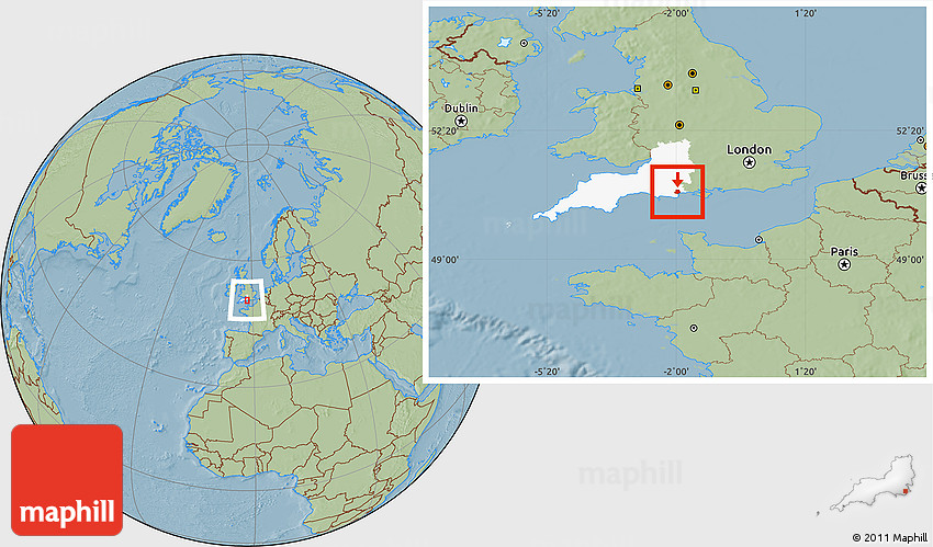 Maphill is a collection of map images. This image combines a savanna style map with the globe centered on Poole. Use the buttons under the image to switch to different map types.