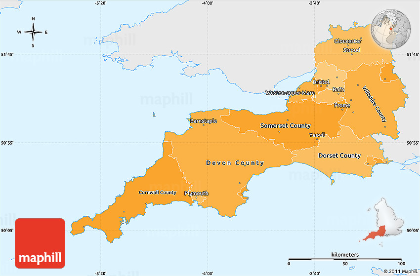 Use the buttons for Facebook, Twitter or Google+ to share this South West, England, United Kingdom map. Maphill is the largest web map gallery. However, the number of maps is certainly not the only reason to visit Maphill.