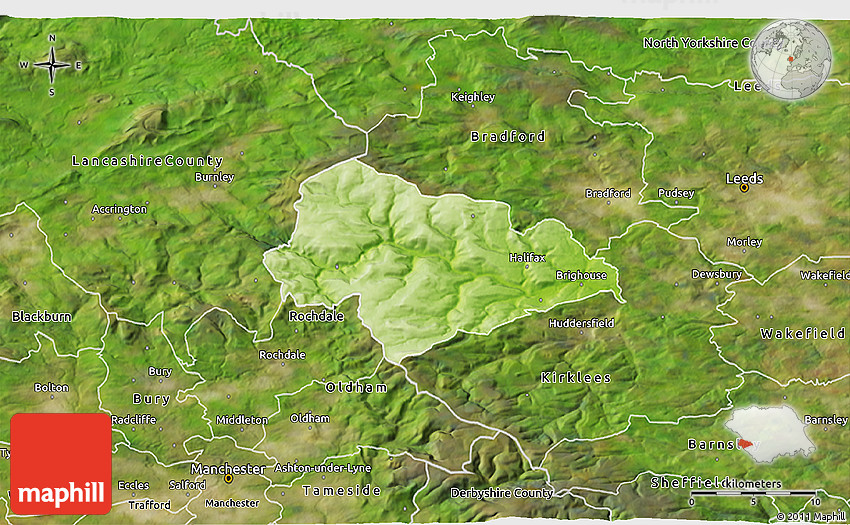 Satellite map shows the Earth's surface as it really looks like. The above map is based on satellite images taken on July 2004. This satellite map of Calderdale is meant for illustration purposes only. For more detailed maps based on newer satellite and aerial images switch to a detailed map view.
