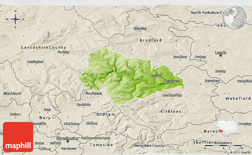 Each map style has its advantages. No map type is the best. The best is that Maphill lets you look at the whole area of Calderdale from several different angles.