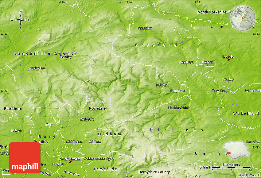 Maphill is a collection of map images. This physical map of Calderdale is one of them. Click on the Detailed button under the image to switch to a more detailed map.