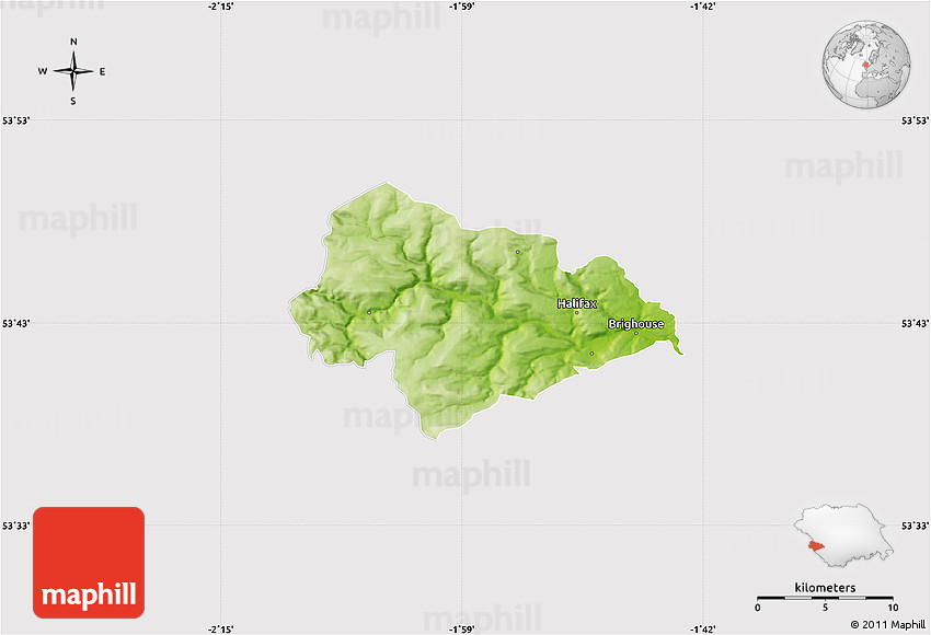Maphill is a collection of map images. This physical map of Calderdale is one of them. Click on the Detailed button under the image to switch to a more detailed map.