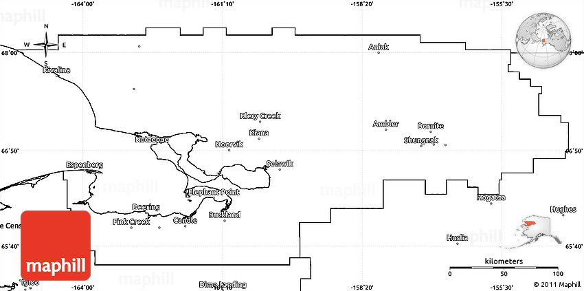 Maphill is a collection of map graphics. This simple outline map of Northwest Arctic Borough is one of these images. Use the buttons under the image to switch to more comprehensive and detailed map types.