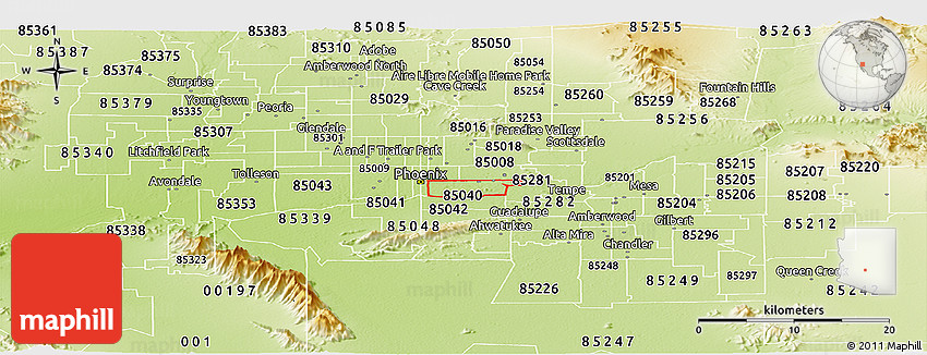 The value of Maphill lies in the possibility to look at the same area from several perspectives. Maphill presents the map of ZIP code 85034 in a wide variety of map types and styles.