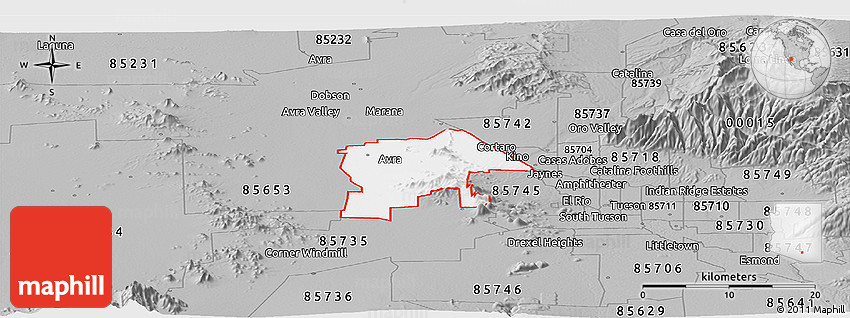 Embed the above gray panoramic map of ZIP code 85743 into your website. Enrich your blog with quality map graphics. Make the web a more beautiful place.