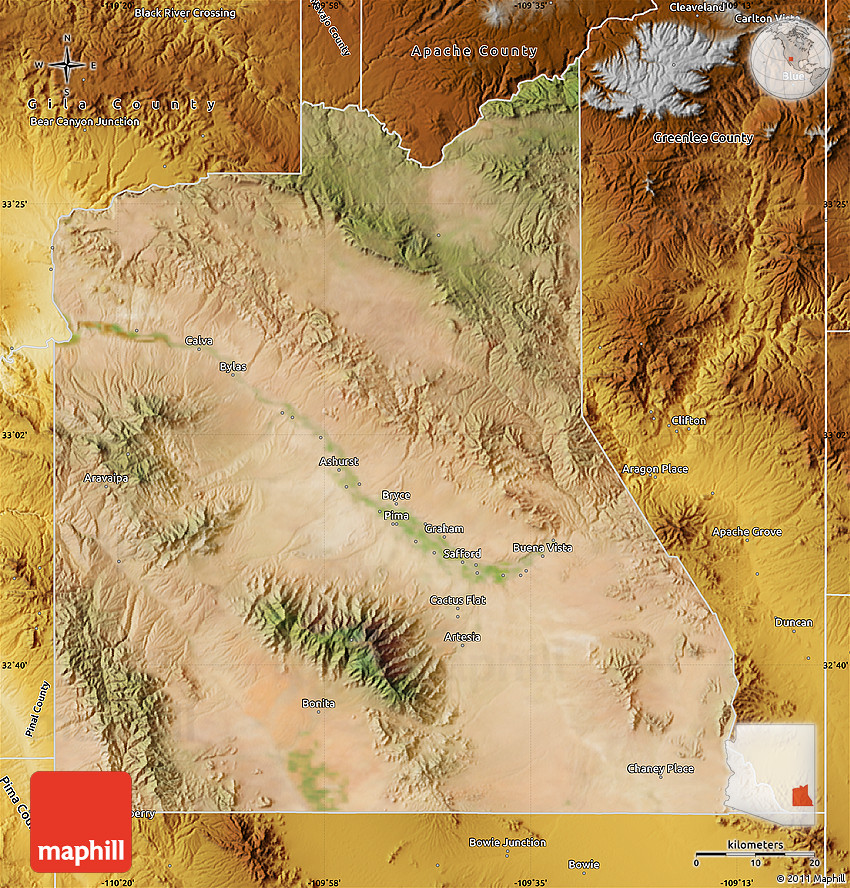 Maphill is a collection of map images. This satellite map of Graham County is one of them. Click on the Detailed button under the image to switch to a more detailed map.