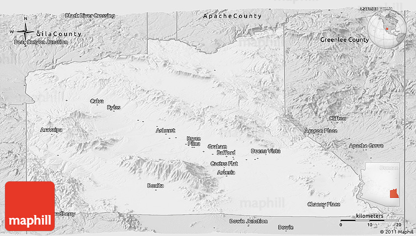 This style is named after the grey, silver looking color scheme used in the map. It has no connection with precious metal, except for it looks beautiful too. Graham County is highlighted in white. This color scheme is similar to gray styled maps, however this map uses the lighter shade of gray.