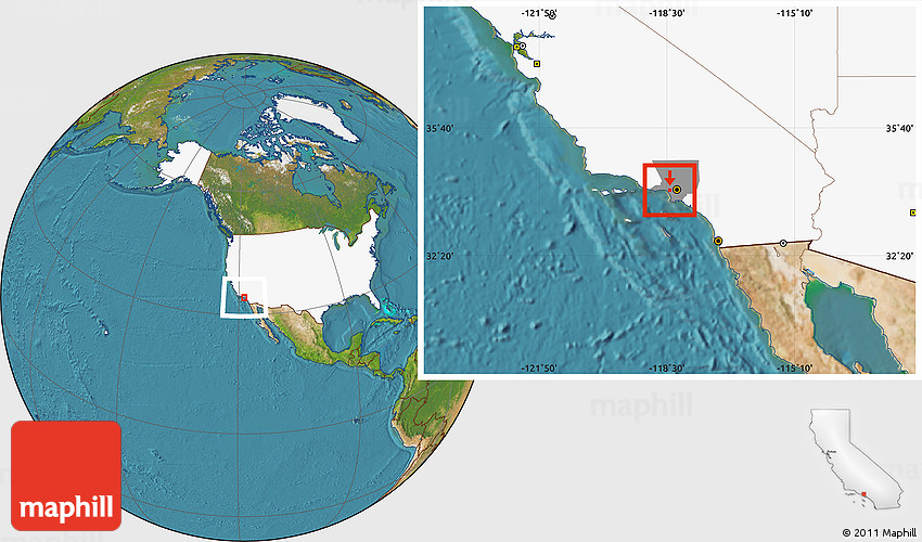 Maphill is a collection of map images. This image combines a satellite map with the globe centered on ZIP code 90064. Use the buttons under the image to switch to different map types.