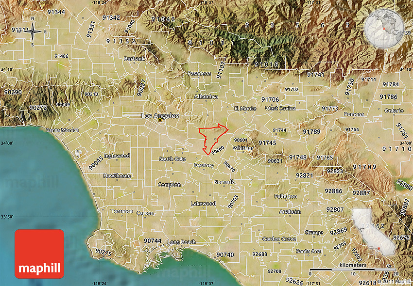 Maphill is a collection of map images. This satellite map of ZIP code 90640 is one of them. Click on the Detailed button under the image to switch to a more detailed map.