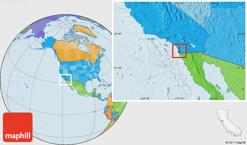 Maphill is a collection of map images. This image combines a political map with the globe centered on ZIP code 92123. Use the buttons under the image to switch to different map types.