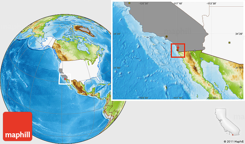 Maphill is a collection of map images. This image combines a physical map with the globe centered on ZIP code 92136. Use the buttons under the image to switch to different map types.