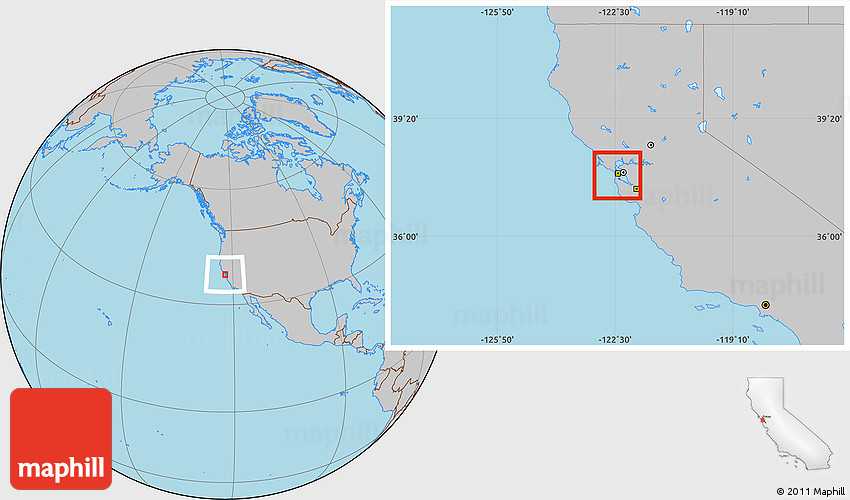 Maphill is a collection of map images. This image combines a gray map with the globe centered on ZIP codes starting with 941. Use the buttons under the image to switch to different map types.