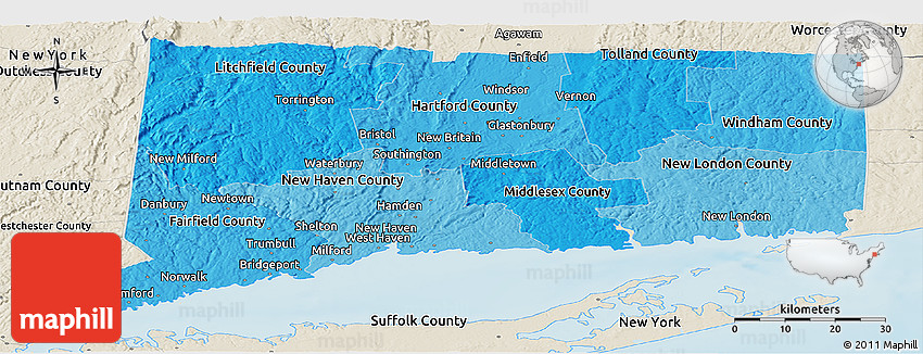 The panoramic political shades map represents one of many map types and styles available. Look at Connecticut from different perspectives.