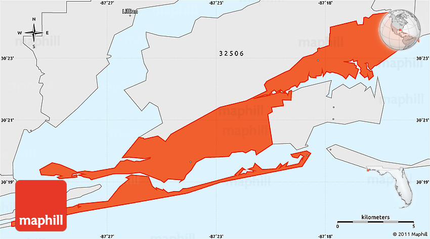 Embed the above political simple map of ZIP code 32507 into your website. Enrich your blog with quality map graphics. Make the web a more beautiful place.