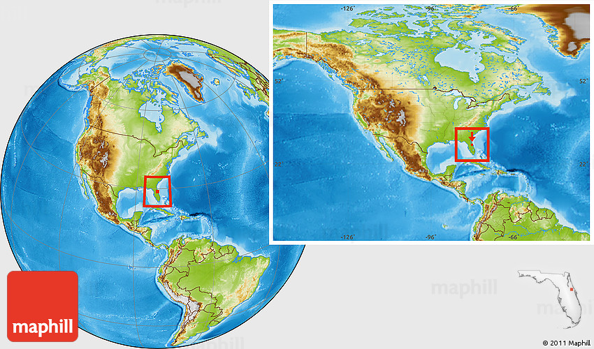 Maphill is a collection of map images. This image combines a physical map with the globe centered on ZIP code 32738. Use the buttons under the image to switch to different map types.