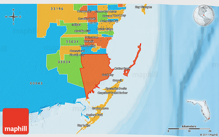 The 3D political ZIP code map represents one of several map styles available. Look at ZIP code 33035 from different perspectives.