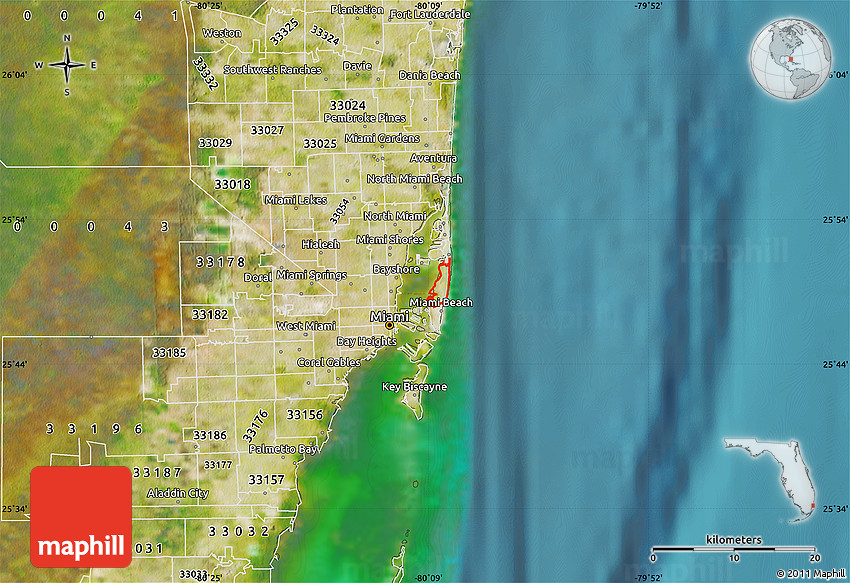 The value of Maphill lies in the possibility to look at the same area from several perspectives. Maphill presents the map of ZIP code 33140 in a wide variety of map types and styles.