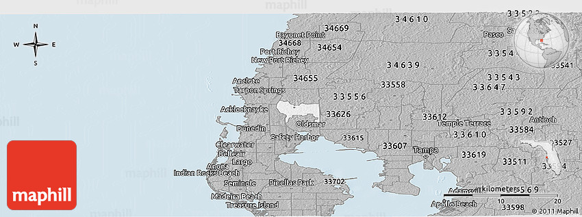 Embed the above gray panoramic map of ZIP code 34685 into your website. Enrich your blog with quality map graphics. Make the web a more beautiful place.