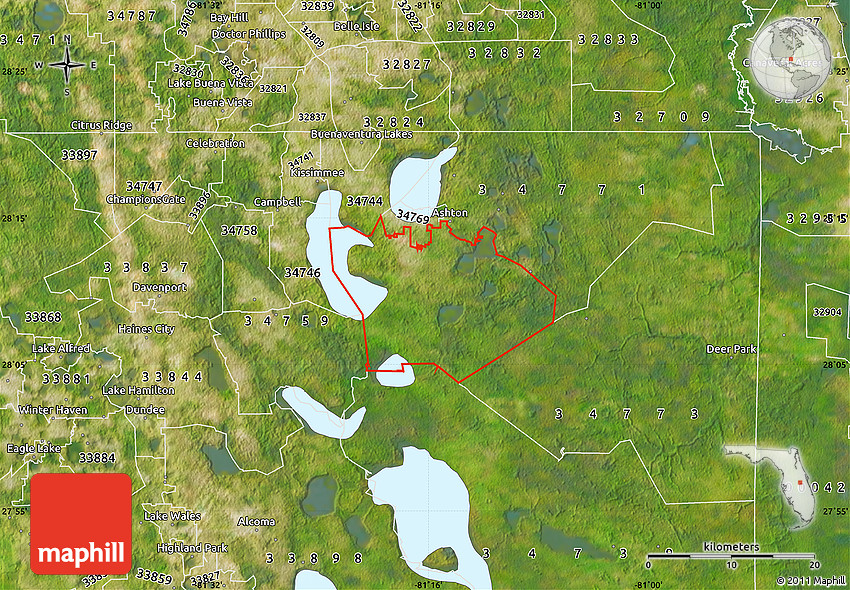 Maphill is a collection of map images. This satellite map of ZIP code 34772 is one of them. Click on the Detailed button under the image to switch to a more detailed map.