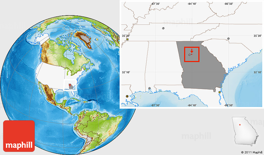 Maphill is a collection of map images. This image combines a physical map with the globe centered on ZIP code 30083. Use the buttons under the image to switch to different map types.