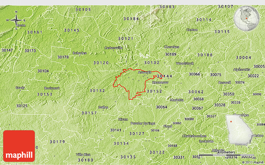 Use the buttons for Facebook, Twitter or Google+ to share a link to this physical map of ZIP code 30101. Maphill is the largest map gallery on the web. However, if the number of maps was the only reason to visit Maphill, then it's really not much.