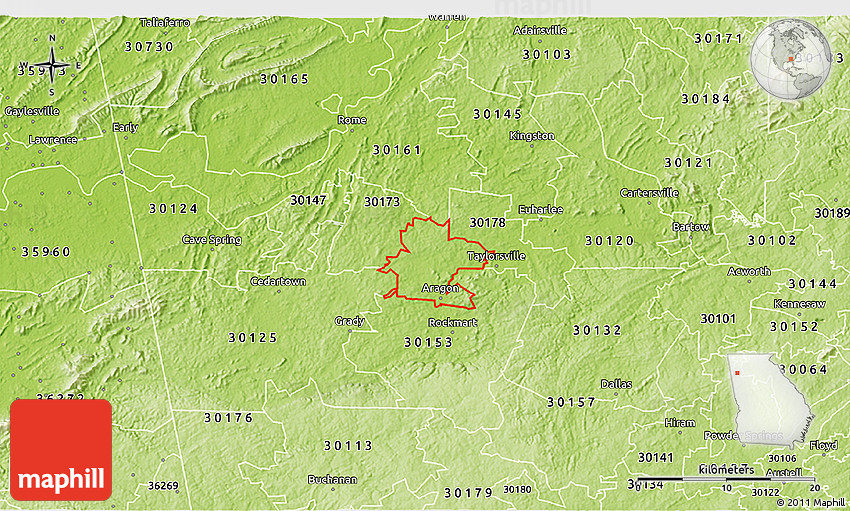 Use the buttons for Facebook, Twitter or Google+ to share a link to this physical map of ZIP code 30104. Maphill is the largest map gallery on the web. However, if the number of maps was the only reason to visit Maphill, then it's really not much.