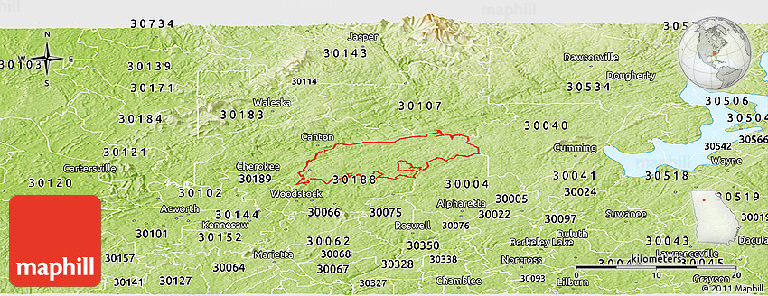 The panoramic physical ZIP code map represents one of several map styles available. Look at ZIP code 30115 from different perspectives.
