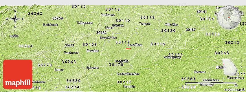 Use the buttons for Facebook, Twitter or Google+ to share a link to this physical map of ZIP code 30118. Maphill is the largest map gallery on the web. However, if the number of maps was the only reason to visit Maphill, then it's really not much.
