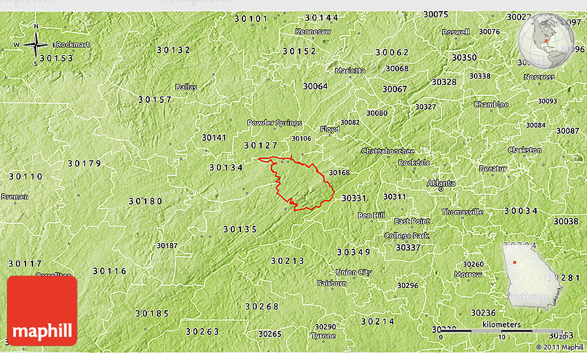 Use the buttons for Facebook, Twitter or Google+ to share a link to this physical map of ZIP code 30122. Maphill is the largest map gallery on the web. However, if the number of maps was the only reason to visit Maphill, then it's really not much.