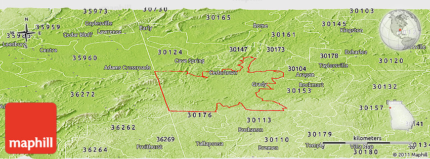 The value of Maphill lies in the possibility to look at the same area from several perspectives. Maphill presents the map of ZIP code 30125 in a wide variety of map types and styles.