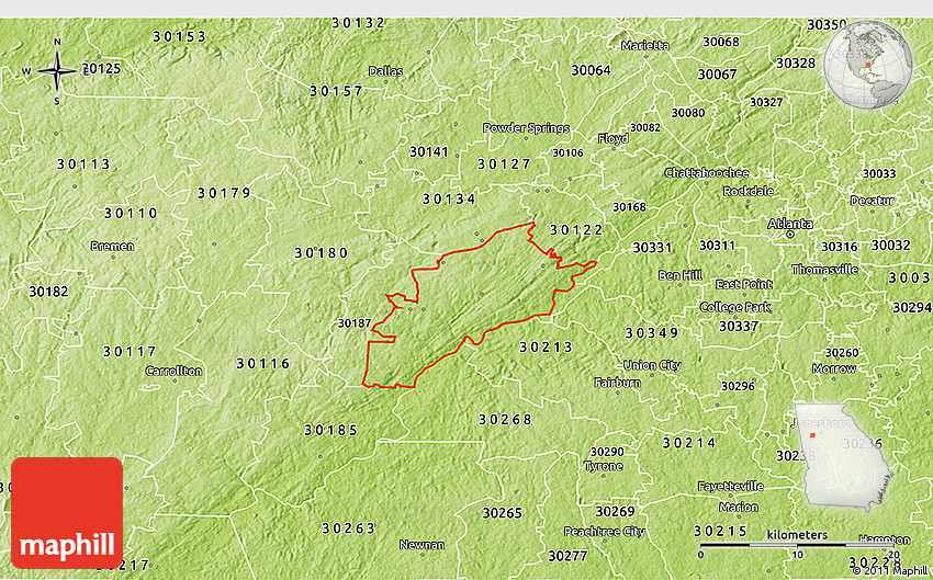 Use the buttons for Facebook, Twitter or Google+ to share a link to this physical map of ZIP code 30135. Maphill is the largest map gallery on the web. However, if the number of maps was the only reason to visit Maphill, then it's really not much.