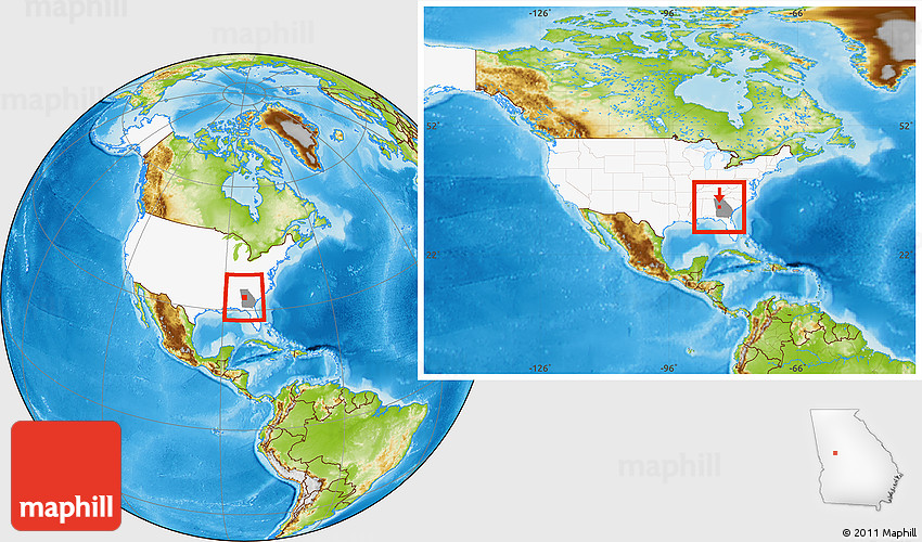 Maphill is a collection of map images. This image combines a physical map with the globe centered on ZIP code 30256. Use the buttons under the image to switch to different map types.