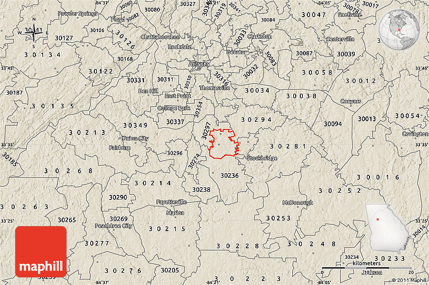 Maphill is a collection of map images. This shaded relief map of ZIP code 30260 is one of them. Click on the Detailed button under the image to switch to a more detailed map.