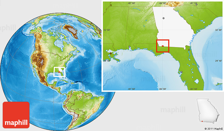 Maphill is a collection of map images. This image combines a physical map with the globe centered on ZIP code 31715. Use the buttons under the image to switch to different map types.