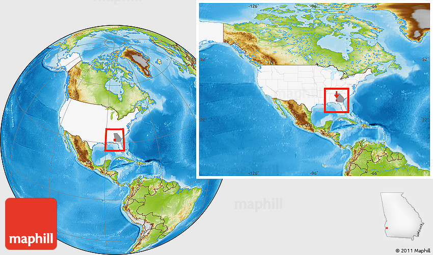 Maphill is a collection of map images. This image combines a physical map with the globe centered on ZIP code 31724. Use the buttons under the image to switch to different map types.