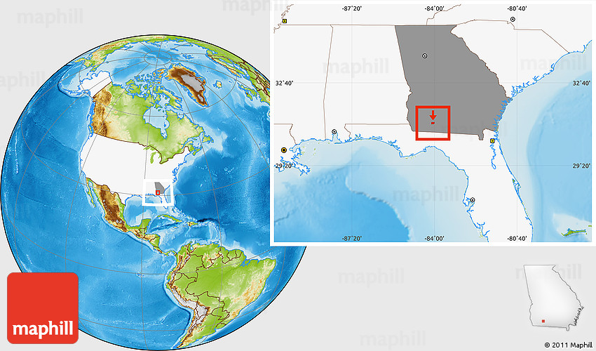 Maphill is a collection of map images. This image combines a physical map with the globe centered on ZIP code 31765. Use the buttons under the image to switch to different map types.