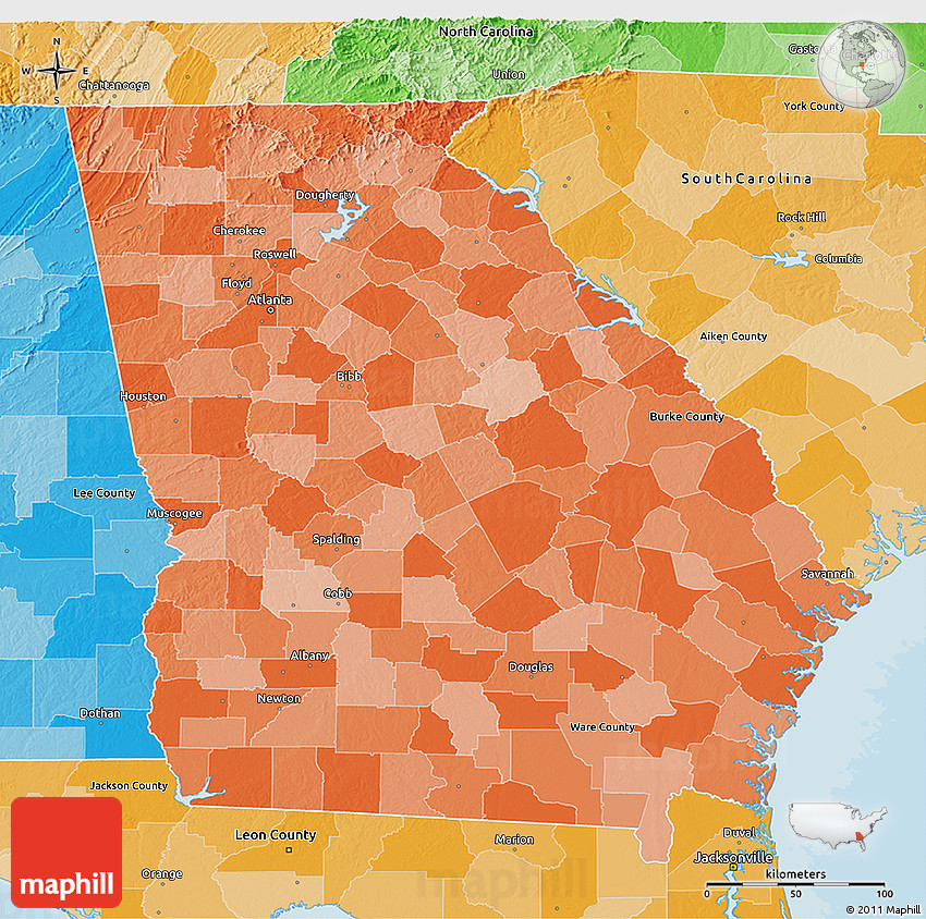 The value of Maphill lies in the possibility to look at the same area from several perspectives. Maphill presents the map of Georgia in a wide variety of map types and styles.