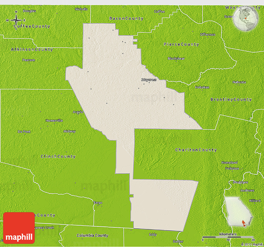 Each map style has its advantages. No map type is the best. The best is that Maphill lets you look at Ware County from many different perspectives.