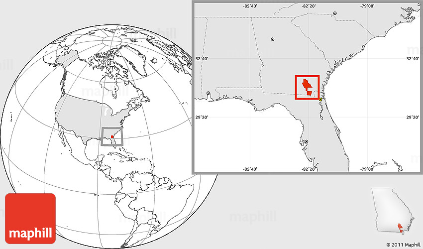 Maphill is a collection of map images. This image combines a blank map with the globe centered on Ware County. Use the buttons under the image to switch to different map types.