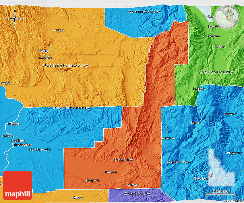 The value of Maphill lies in the possibility to look at the same area from several perspectives. Maphill presents the map of Gem County in a wide variety of map types and styles.