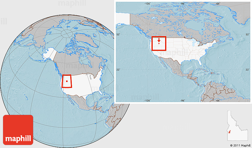Maphill is a collection of map images. This image combines a gray map with the globe centered on Gem County. Use the buttons under the image to switch to different map types.