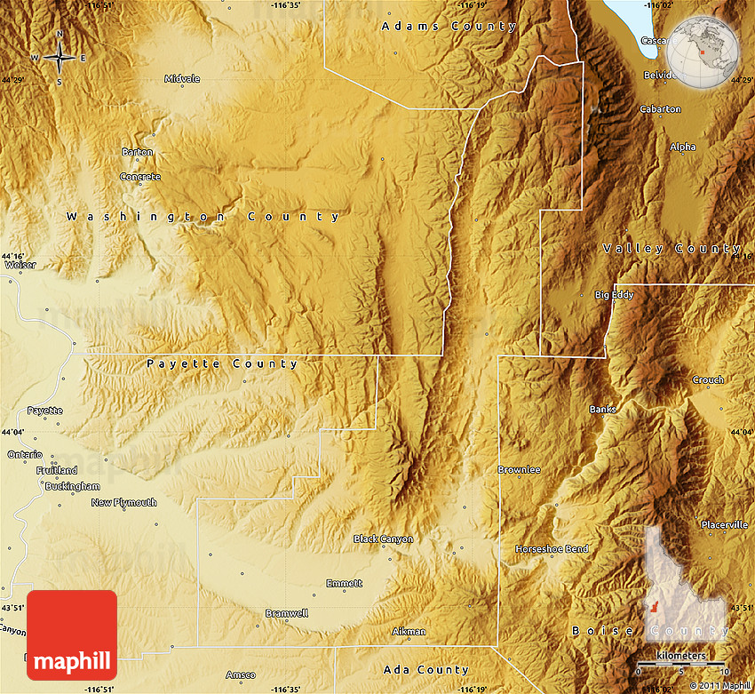 Maphill is a collection of map images. This physical map of Gem County is one of them. Click on the Detailed button under the image to switch to a more detailed map.