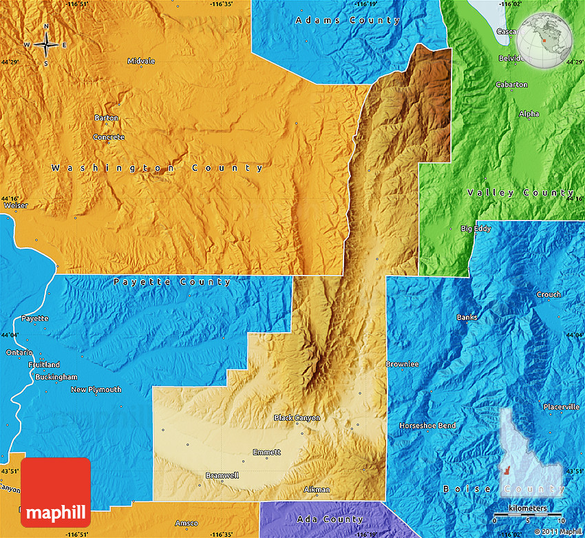 Maphill is a collection of map images. This physical map of Gem County is one of them. Click on the Detailed button under the image to switch to a more detailed map.