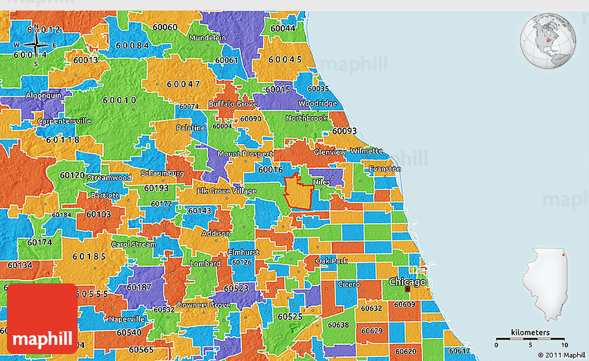 The value of Maphill lies in the possibility to look at the same area from several perspectives. Maphill presents the map of ZIP code 60068 in a wide variety of map types and styles.