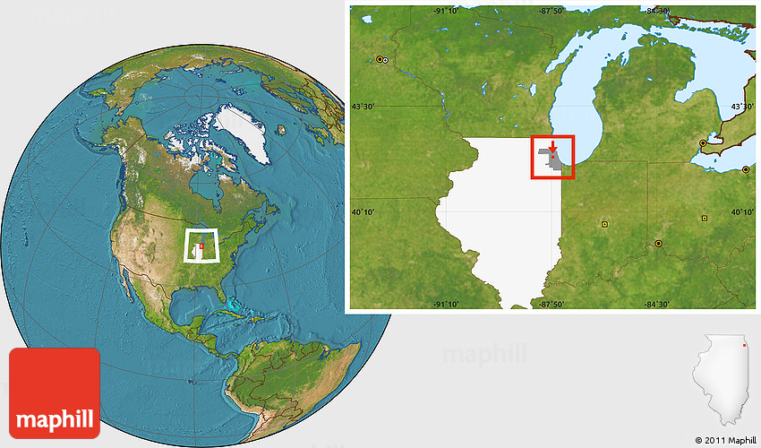 Maphill is a collection of map images. This image combines a satellite map with the globe centered on ZIP code 60301. Use the buttons under the image to switch to different map types.