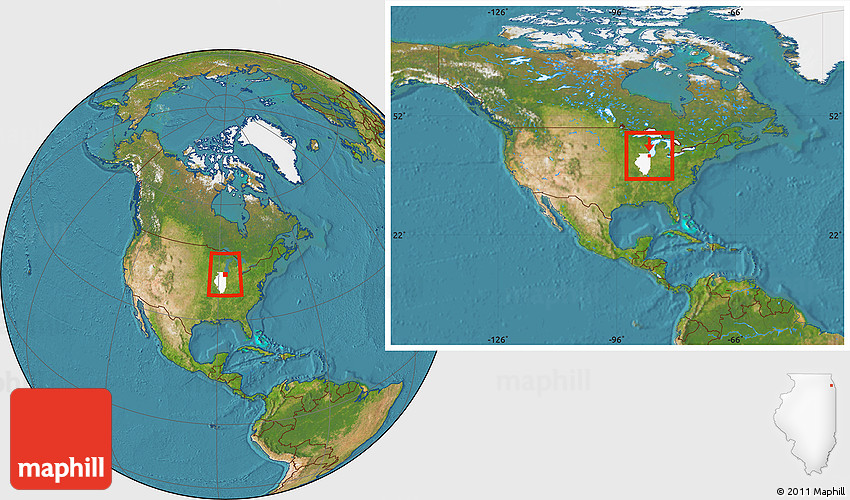 Maphill is a collection of map images. This image combines a satellite map with the globe centered on ZIP code 60301. Use the buttons under the image to switch to different map types.