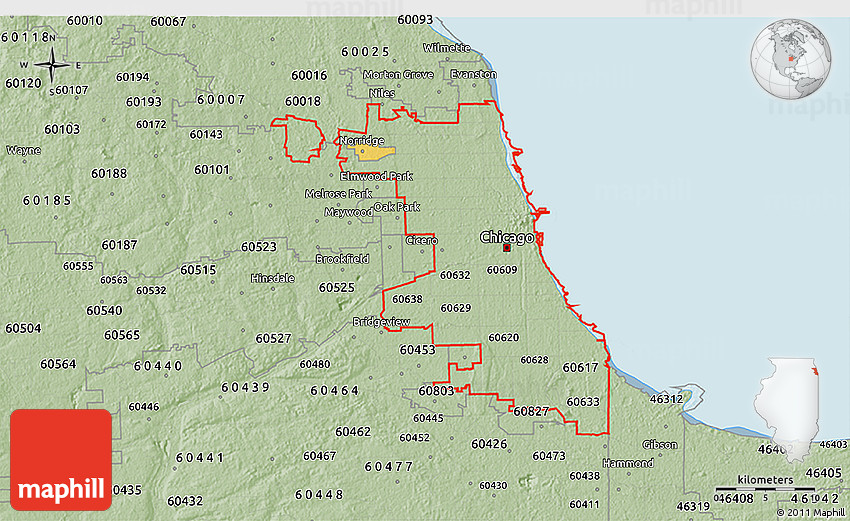 The 3D savanna style map represents one of several map types and styles available. Look at ZIP codes starting with 606 from different perspectives.