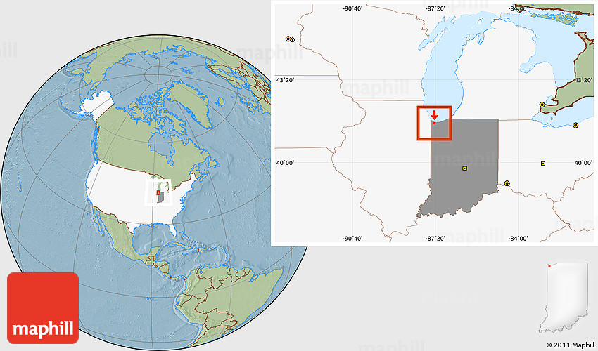 Maphill is a collection of map images. This image combines a savanna style map with the globe centered on ZIP code 46404. Use the buttons under the image to switch to different map types.