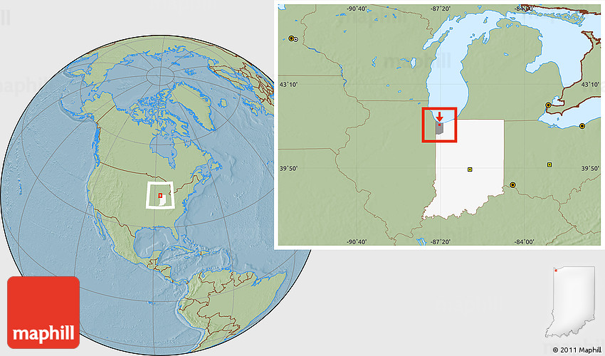 Maphill is a collection of map images. This image combines a savanna style map with the globe centered on ZIP code 46408. Use the buttons under the image to switch to different map types.