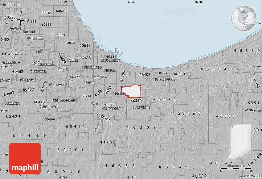 Maphill is a collection of map images. This gray map of ZIP code 46408 is one of them. Click on the Detailed button under the image to switch to a more detailed map.